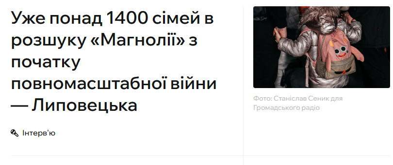 ЗМІ про нас: Уже понад 1400 сімей в розшуку «Магнолії» з початку повномасштабної війни — Липовецька